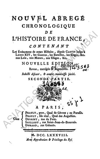 | Author | : | Henault, Charles-Jean-Francois Antoine-Etienne-Nicolas |