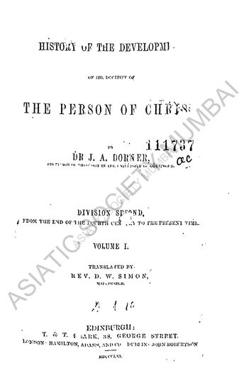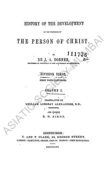 | Author | : | Dorner, J. A. Simon, D. W. Rev. (Tr.) |