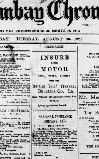 The Bombay Chronicle, 30 August 1921