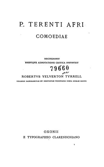 P. Terenti Afri Comoediae (Scriptorum Classicorum Bibli ...