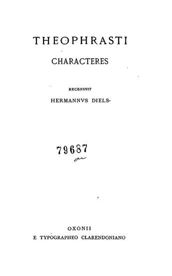 Theophrasti Characteres (Scriptorum Classicorum Bibliot ...