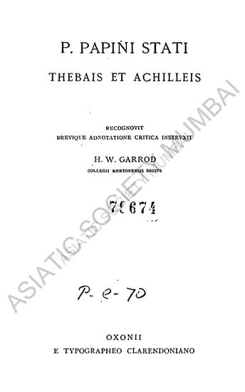Statius, P. Papinius; Garrod, H. W.