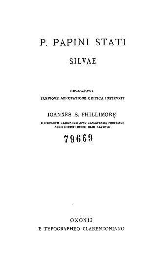 P. Papini Stati Silvae (Scriptorum Classicorum Biblioth ...