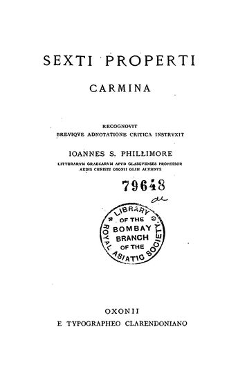 Sexti Properti Carmina (Scriptorum Classicorum Biblioth ...