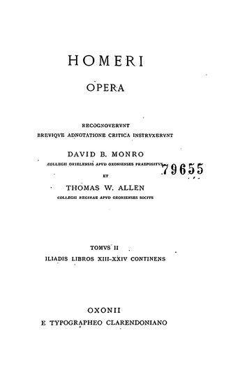 Homeri Opera, Vol. II- Iliadis Libros XIII-XXIV contine ...