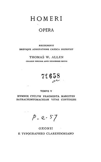 Homeri Opera, Vol. V- Hymnos Cyclvm Fragmenta Margiten ...