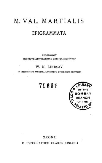 M. Val. Martialis Epigrammata (Scriptorum Classicorum B ...