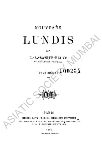 | Publisher | : | Michel Levy Freres, Libraires-Editeurs |