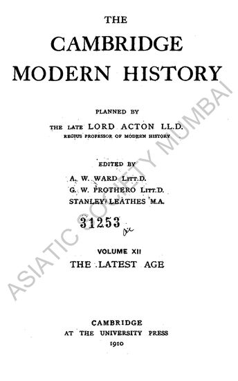 Acton, Lord; Ward, A. W. (Ed.); Prothero, G. W. ( et al.