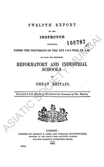 Seventh and Eighth Reports of Inspector Reformatory Schools in Ireland, Reports 7 & 8