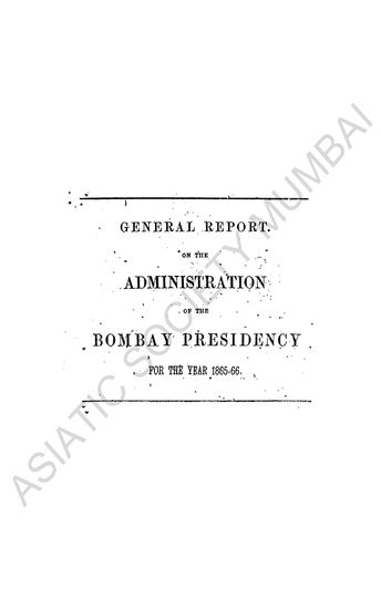 General Report on the Administration of the Bombay Pres ...