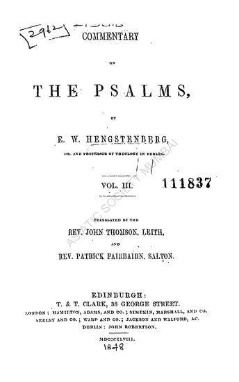 | Author | : | Hengstenberg, E. W. Meyer, Theod. Rev. (Tr.) |