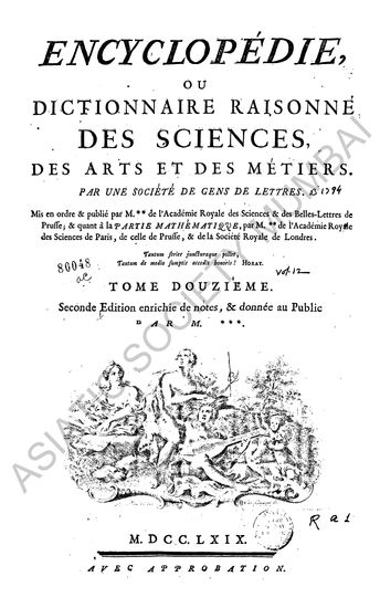 Encyclopedie; ou, Dictionnaire Raisonne des Sciences des Arts et des Metiers, 2nd ed., Vol. XIII- POL-REG