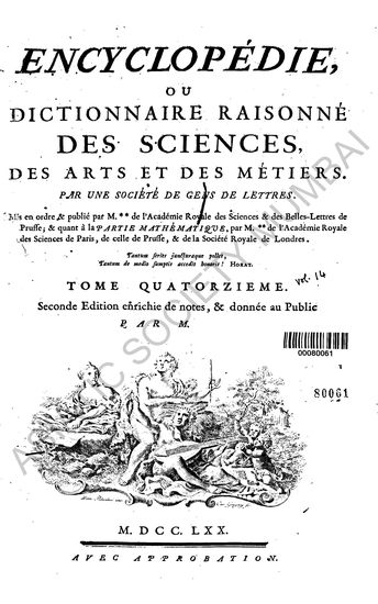 Encyclopédie; ou, Dictionnaire Raisonné des Sciences, d ...