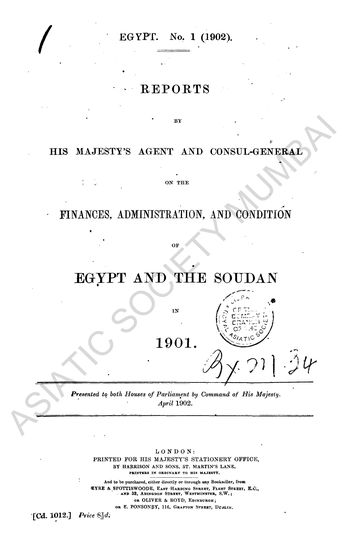 Reports by His Majesty's Agent and Consul-General on the Finances, Administration and Condition of Egypt and the Soudan in 1905; presented to both Houses of Parliament by Command of His Majesty April 1906 (Egypt No. 1, 1906)