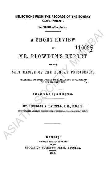 A Short Review of Mr. Plowden's Report on the Salt Exci ...