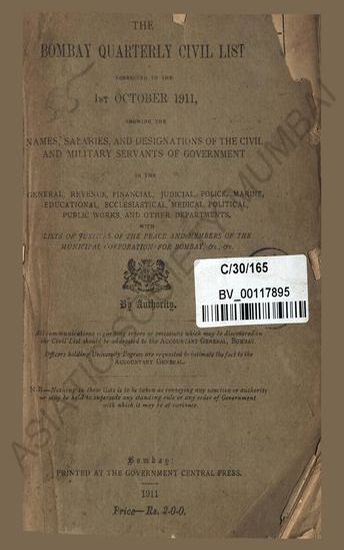 Bombay civil list corrected upto 1st January 1923.