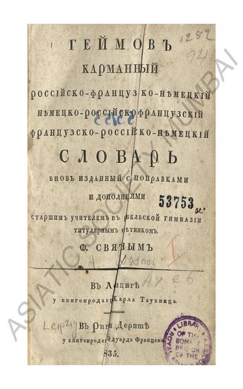 | Language | : | French, Russian, German |