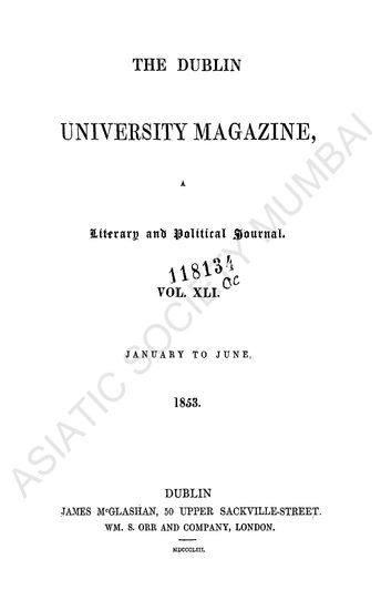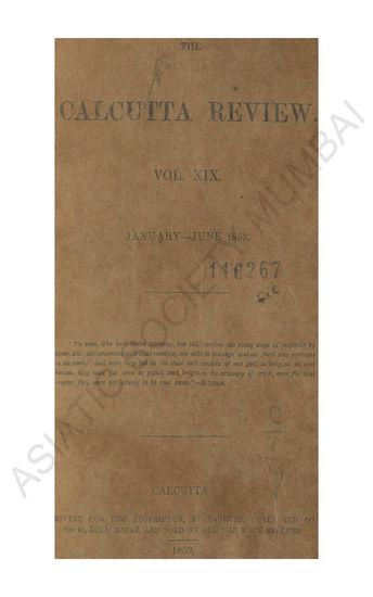 Calcutta Review., Vol. XIX, January-June, 1853.