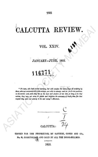 Calcutta Review., Vol. XXIV, January-June, 1855.