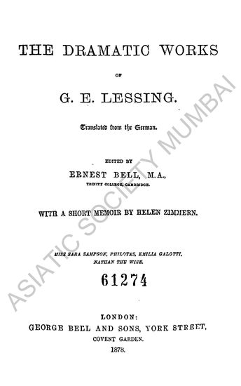 | Author | : | Lessing, G. E. Beasley, E. C. (Tr.) Zimmern, Helen (Tr.) |