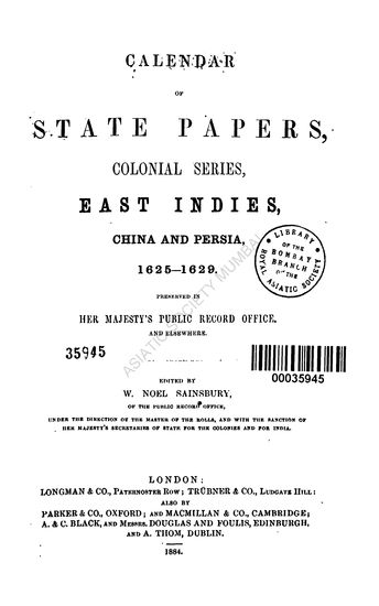 | Author | : | Sainbury, W. Noel (Ed.) |