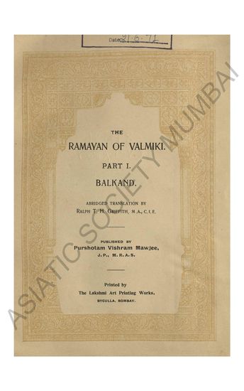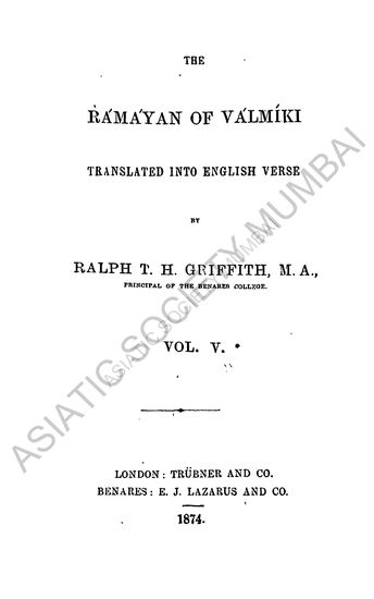 | Author | : | Valmiki Griffith, T. H. (Tr.) |