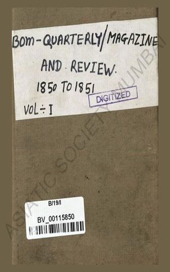 Bombay Quarterly Magazine and Review. Vol.I 1850-1851
