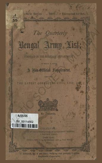 Quarterly Bengal Army List ; compiled in the military Department : to which is added a non-official supplement, the latest corrected civil list, & c.