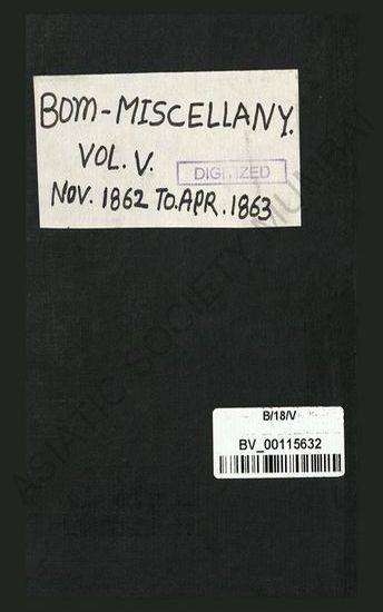 Bombay Miscellany. Chesson & Woodhall's. Vol. V (November 1862-April, 1863).