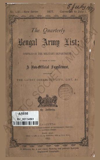 Quarterly Bengal Army List ; compiled in the military Department : to which is added a non-official supplement, the latest corrected civil list, & c.