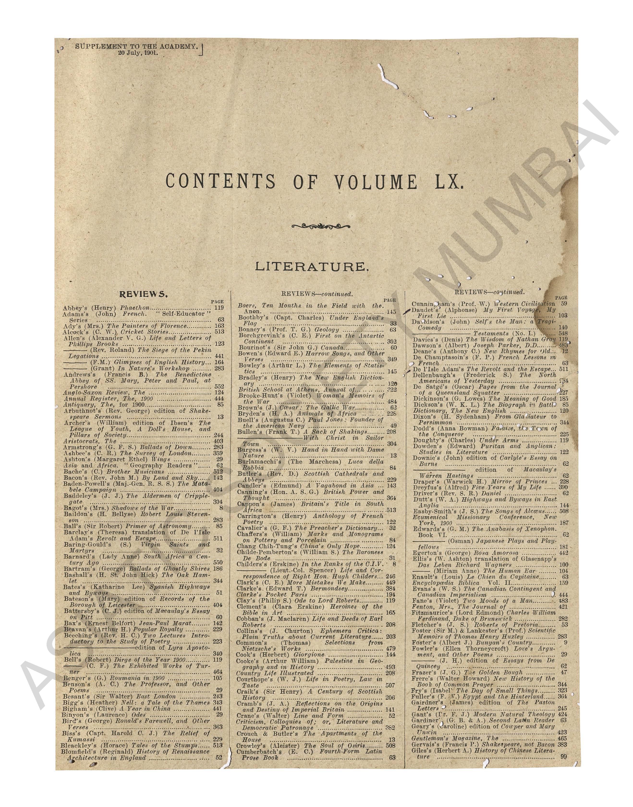 Academy a weekly review of literature & life, July - December, Vol. LXI, 1901.