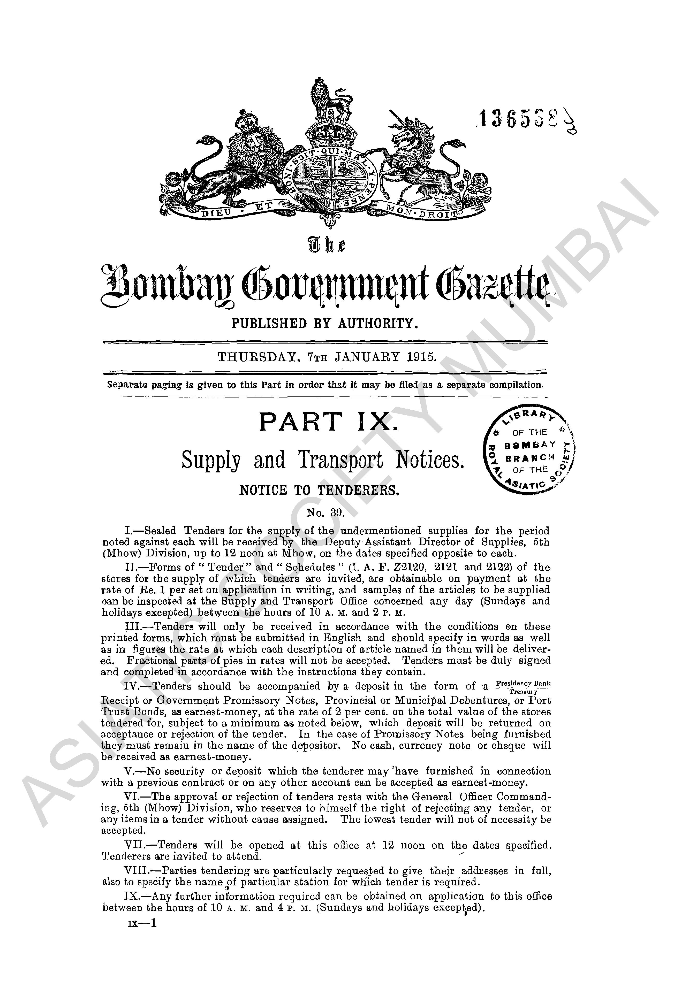 Bombay Government Gazette..., January to June 1915, Part - VIII.
