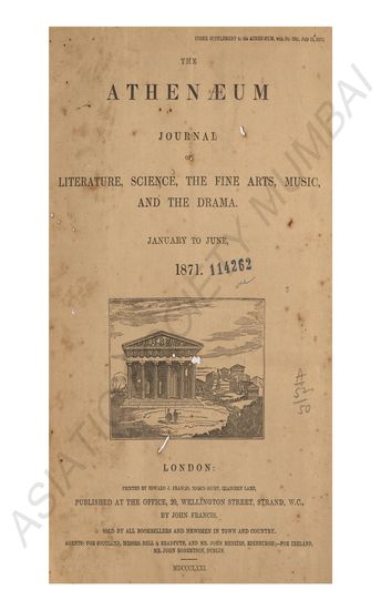 Athenaeum Journal of literature, science, and the fine arts, music, and the drama January to June 1871.