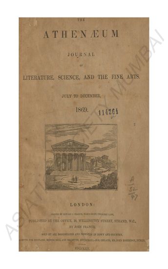 Athenaeum Journal of literature, science, and the fine arts, July to December 1869.