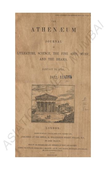 Athenaeum Journal of literature, science, and the fine arts, music, and the drama January to June 1872.