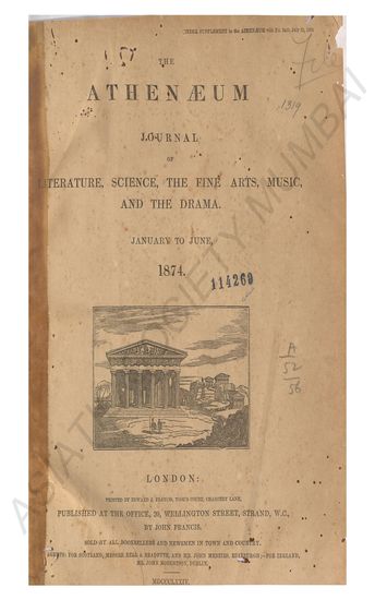 Athenaeum Journal of literature, science, and the fine arts, music, and the drama January to June 1874.