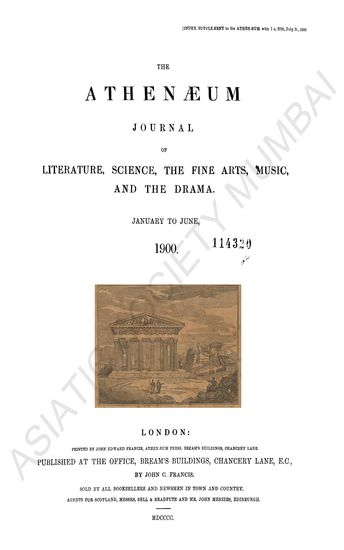 Athenaeum Journal of literature, science, and the fine arts, music, and the drama January to June 1900.