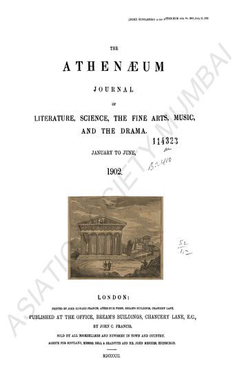 Athenaeum Journal of literature, science, and the fine arts, music, and the drama January to June 1902.