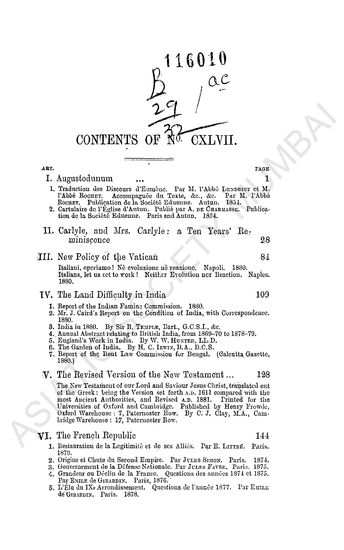 British Quarterly Review July to October 1880 Vol LXXII.