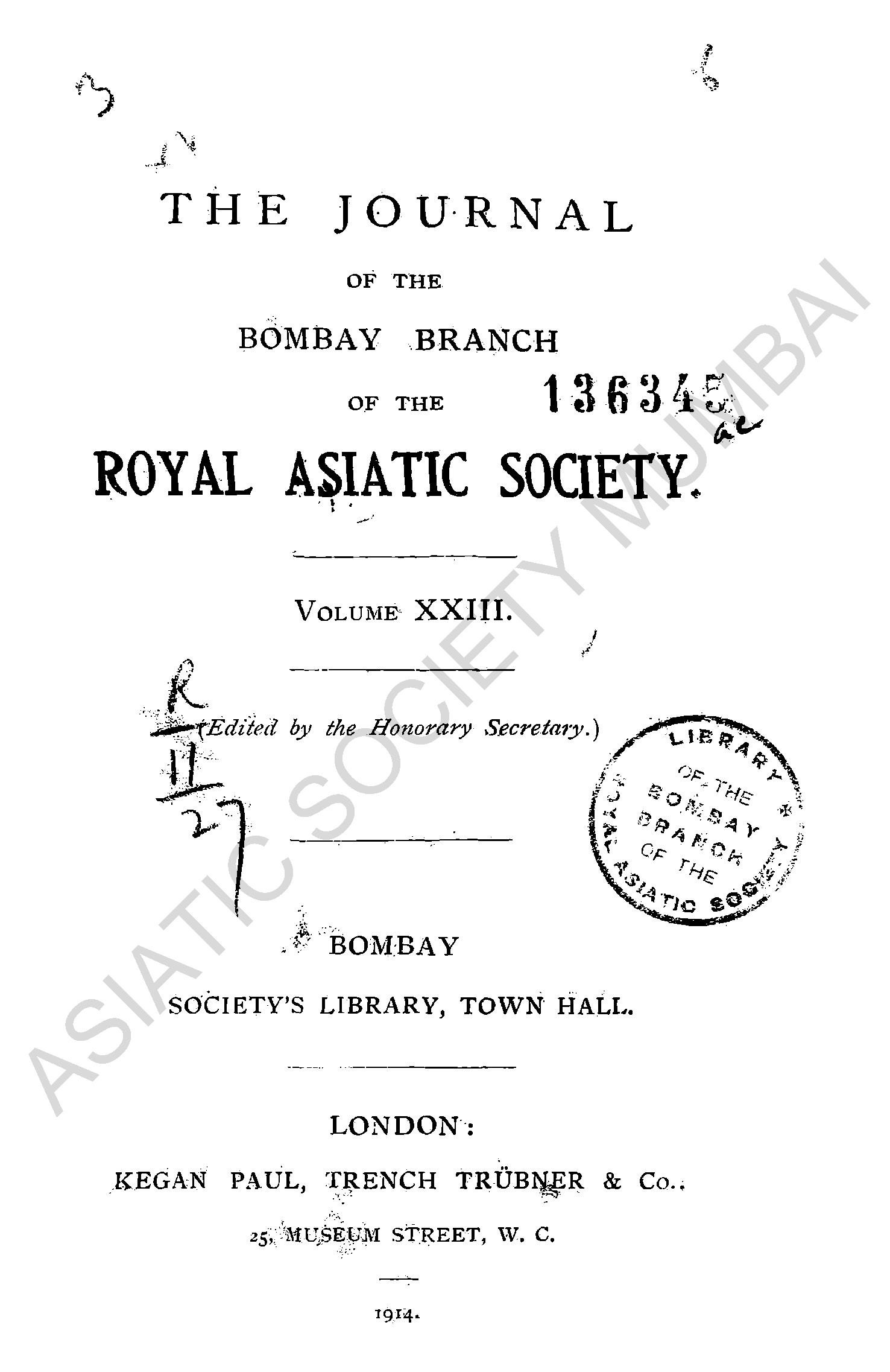 Journal of the Bombay Branch of the Royal Asiatic Society. Vol. XXIII.