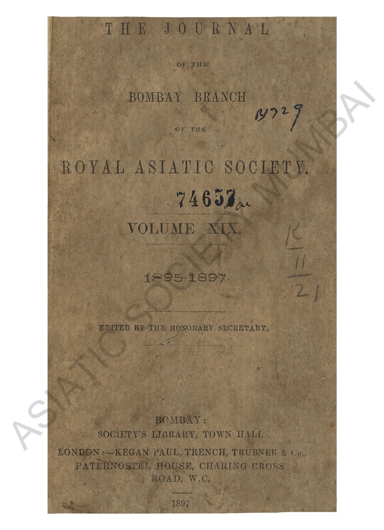 Journal of the Bombay Branch of the Royal Asiatic Society, Vol. XIX, 1895 - 1897.