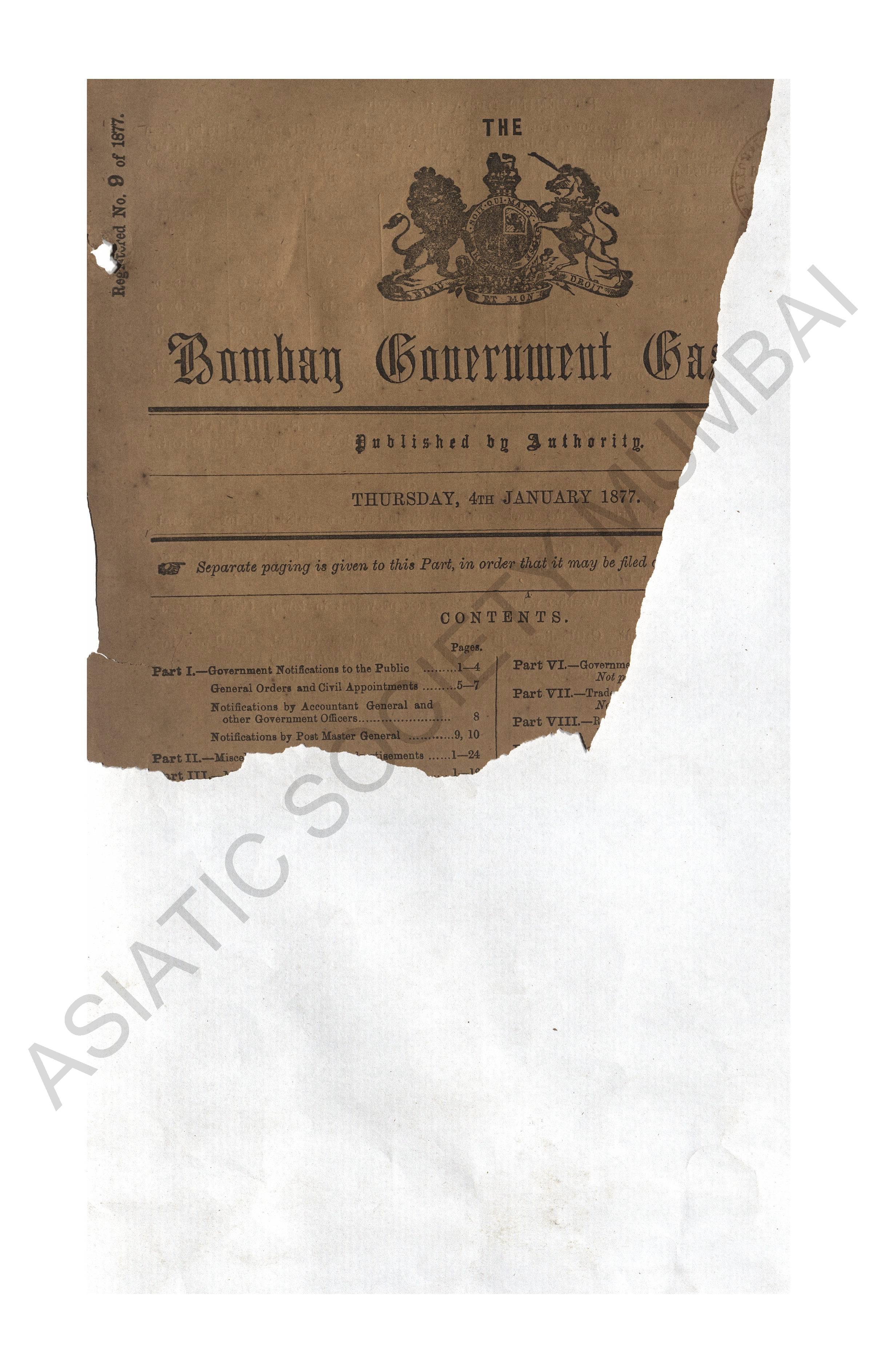 Bombay Government Gazette, Part - 7 1877.