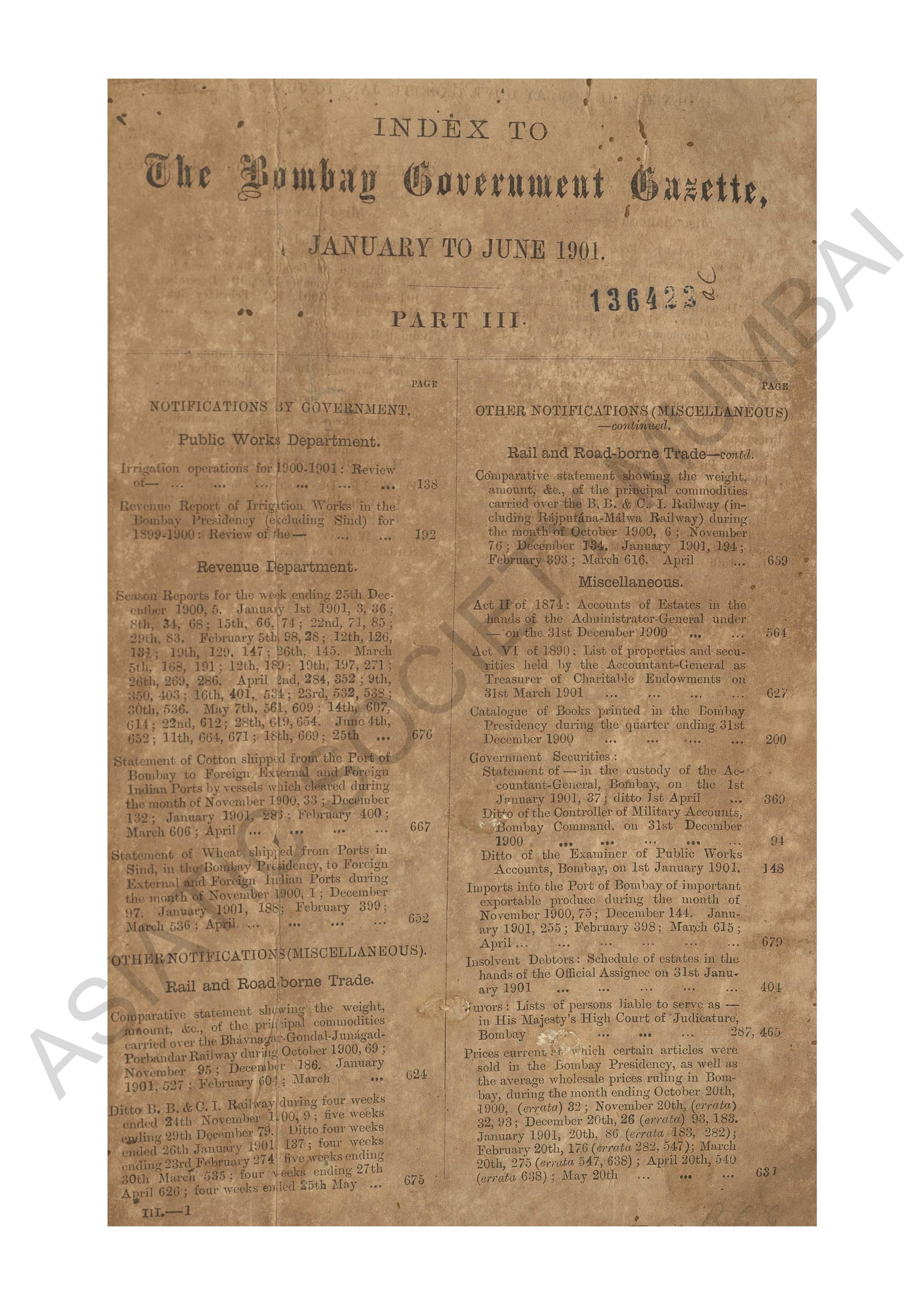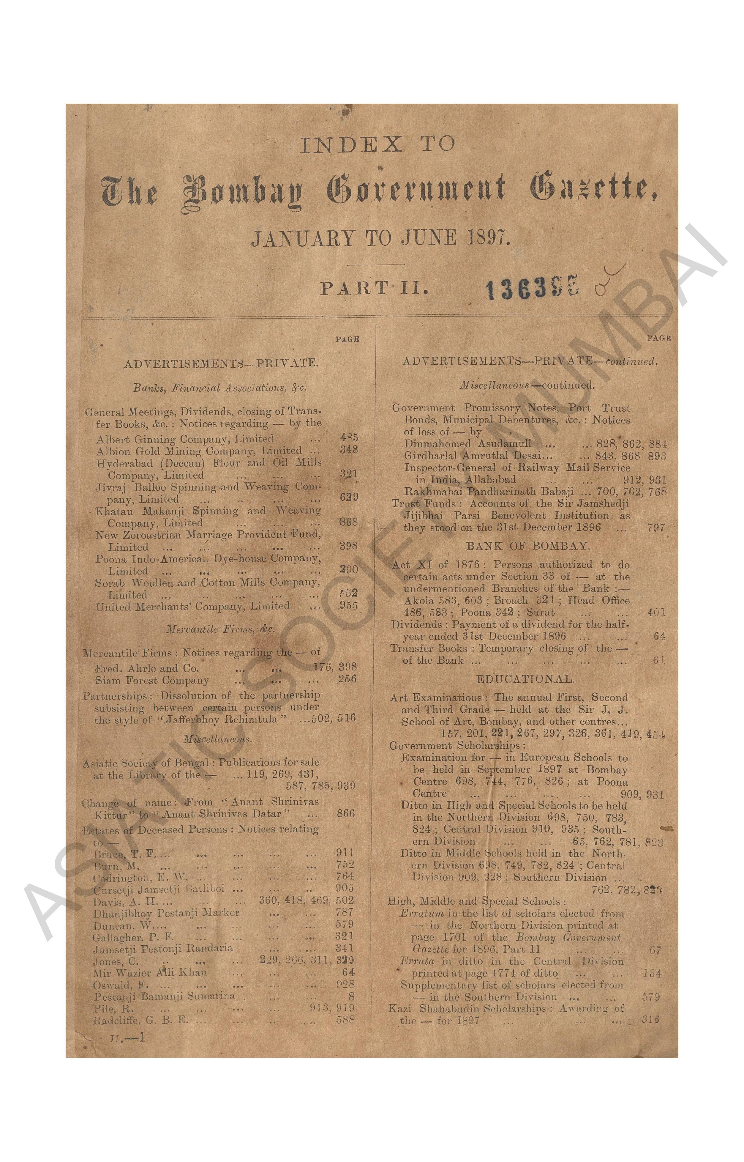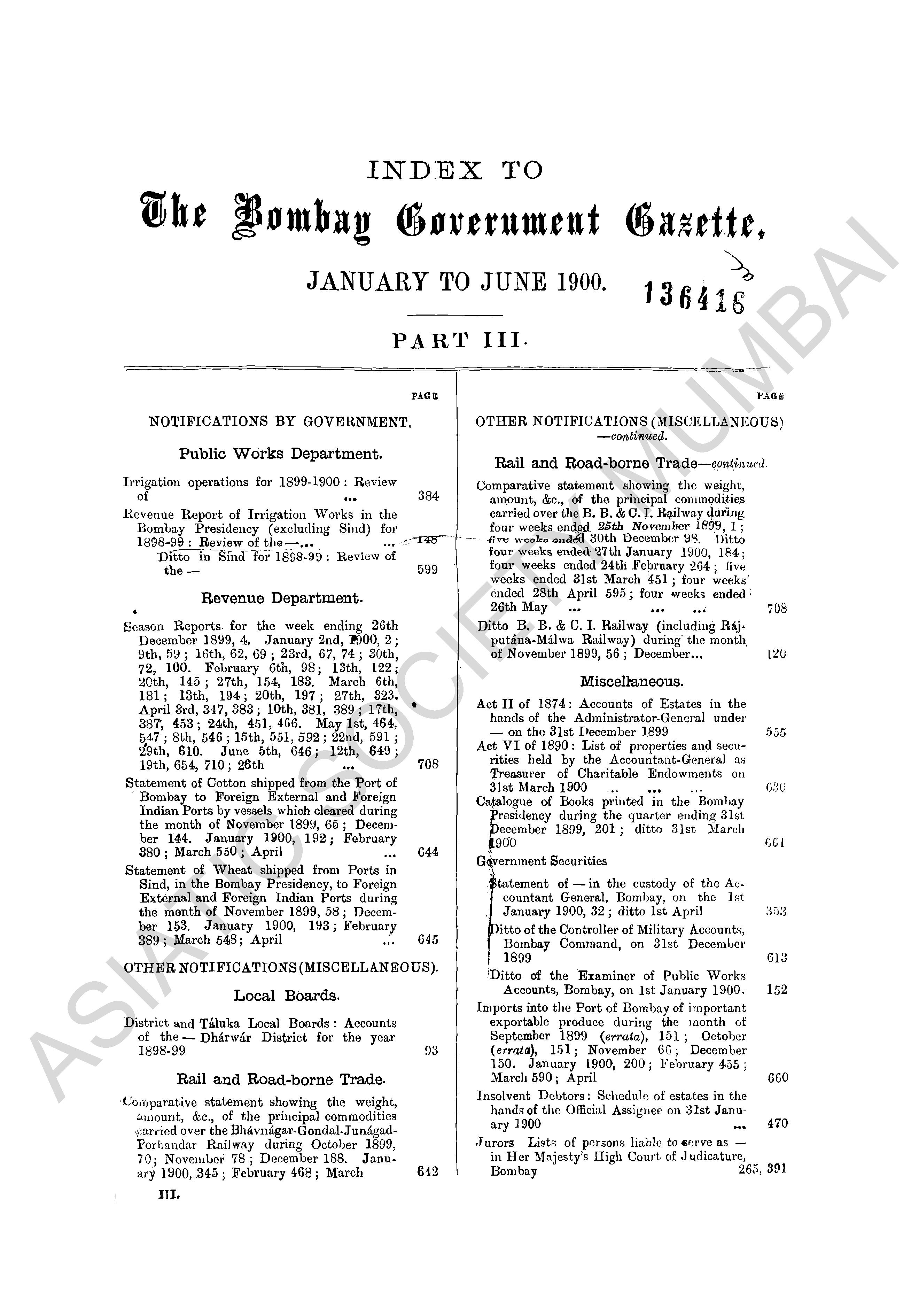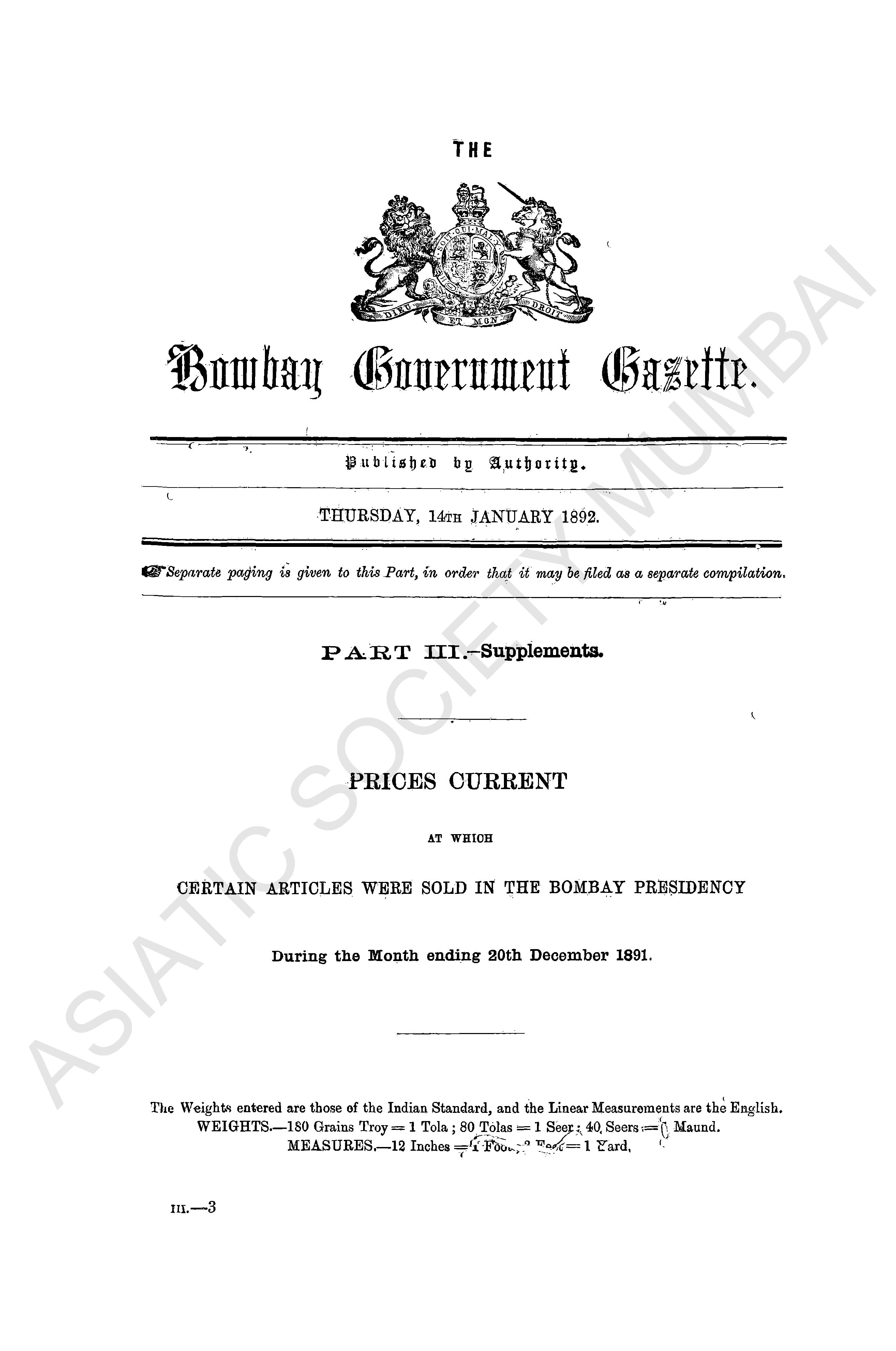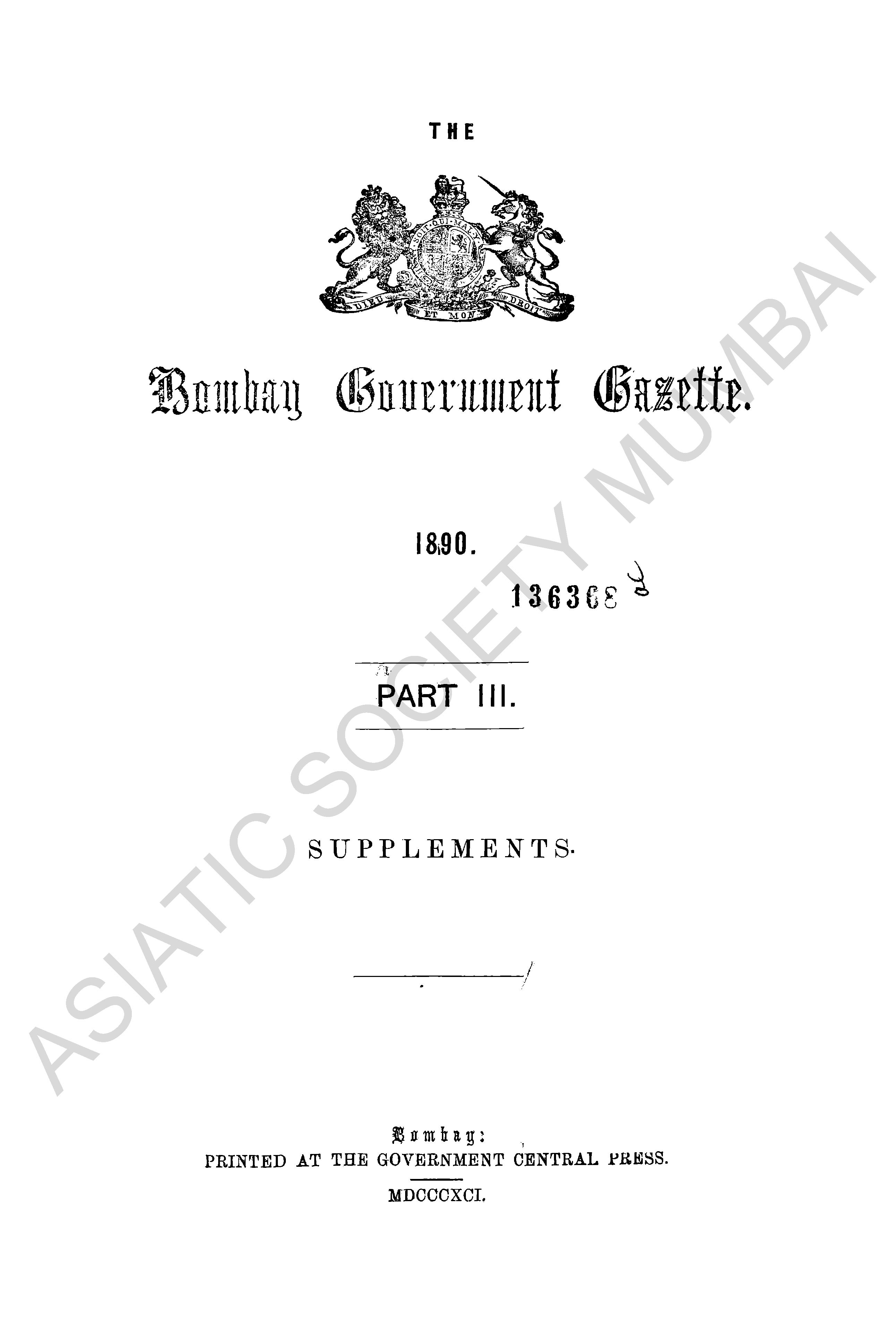 Bombay Government Gazette. Part - III - Supplement, 1890.