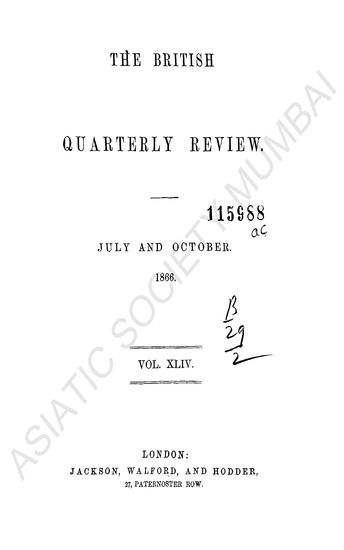 British Quarterly Review July to October 1866 Vol XLIV.
