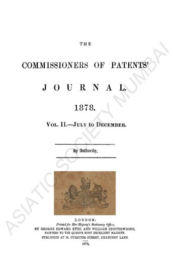 Commissioners of Patents Journal. 1878. Vol II. - July to December.