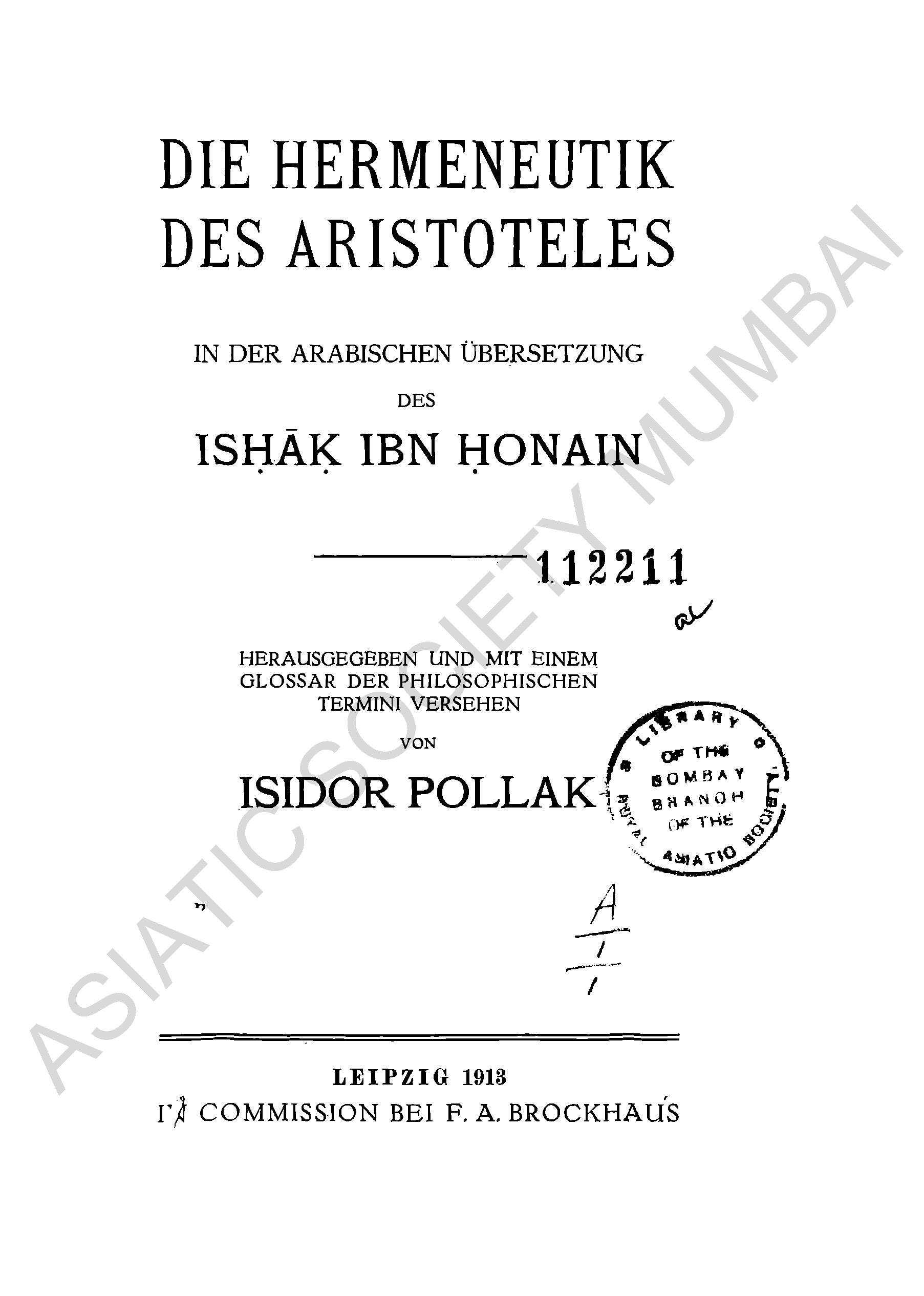 Die Hermeneutik Des Aristoteles.
