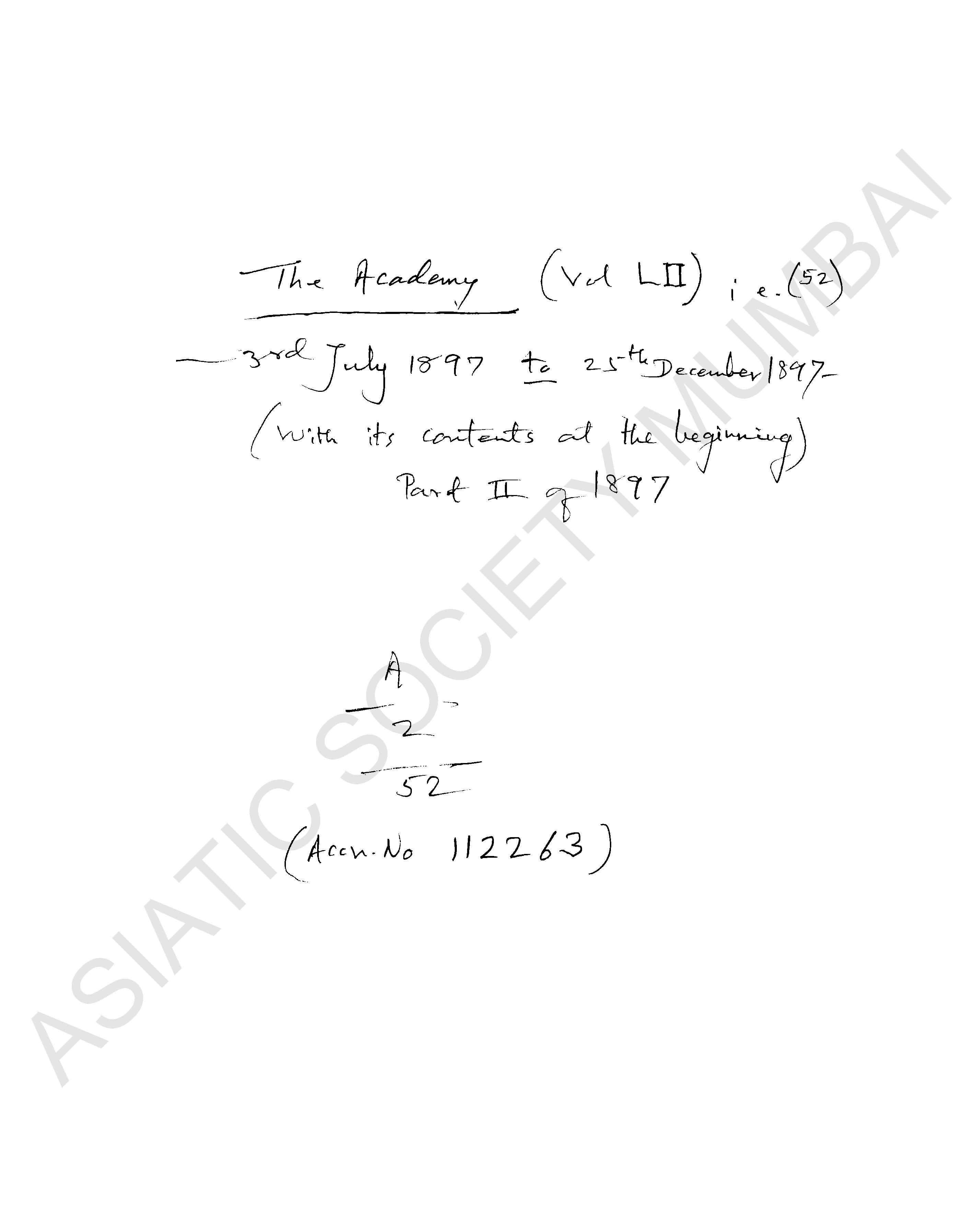 Academy a weekly review of Literature, Science and Art…, Vol. LII, 1897.