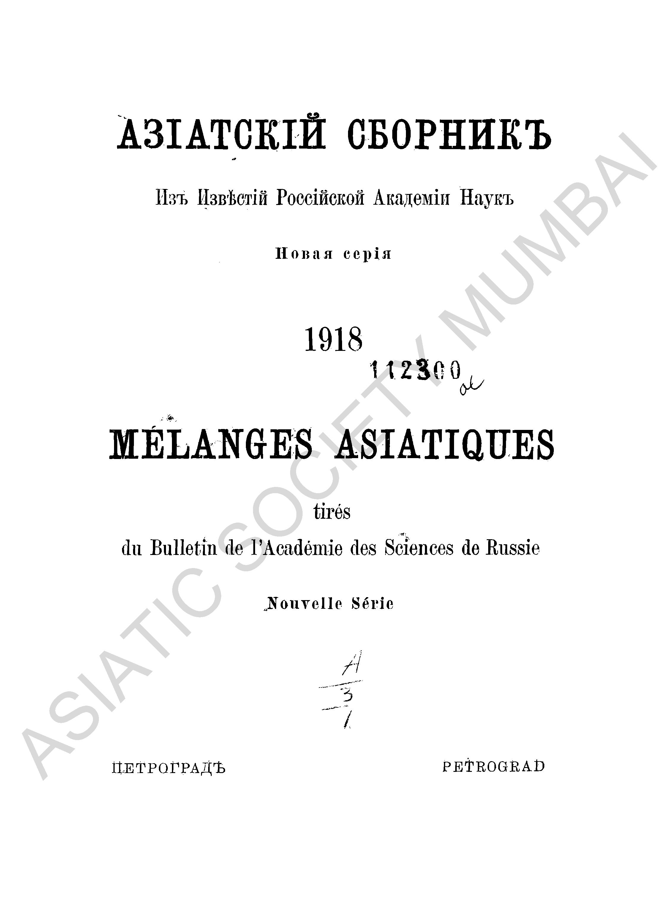 Mélanges asiatiques tirés du Bulletin de lAcadémie des sciences de Russie.