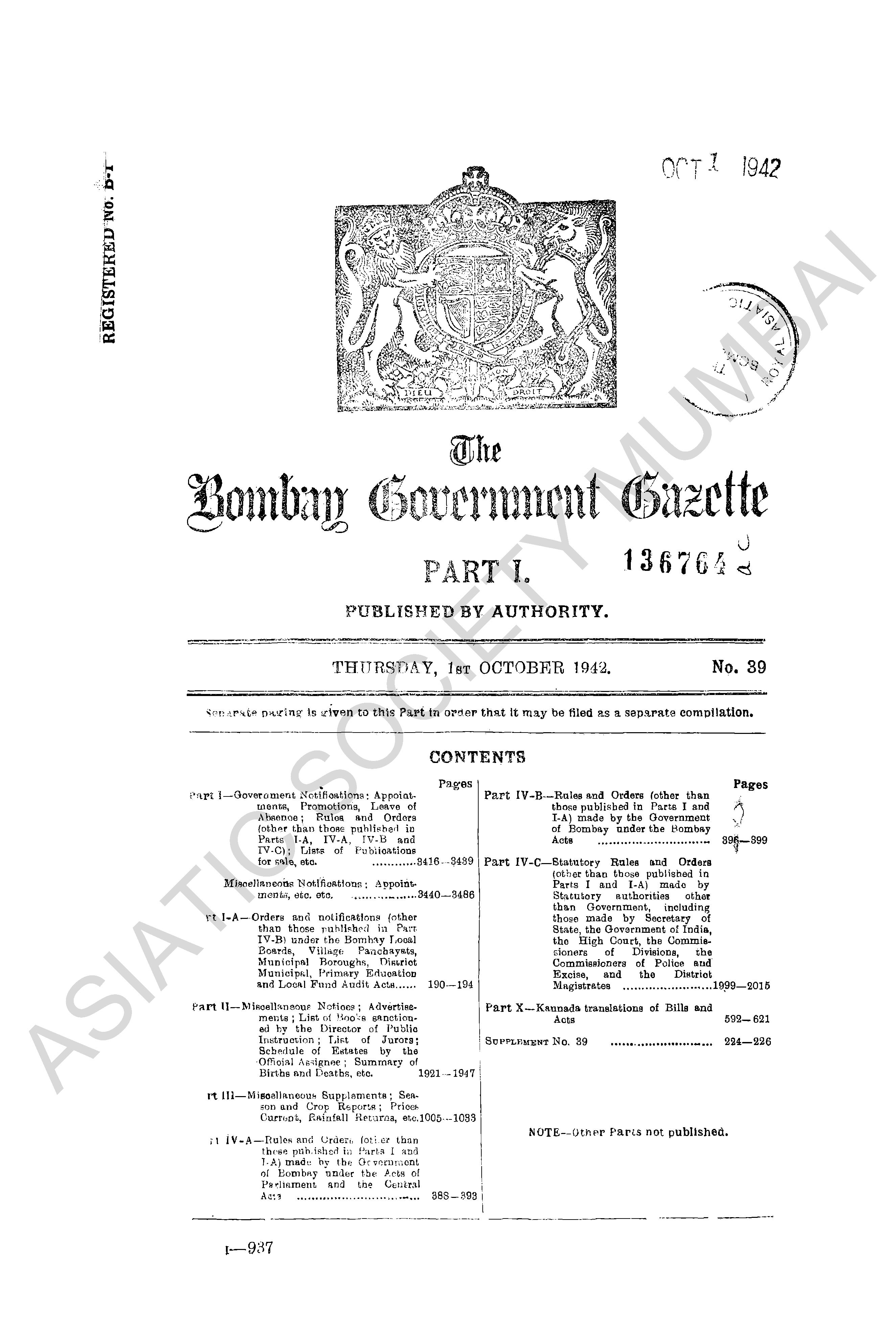 Bombay Government Gazette..., 1947, Part - IV.